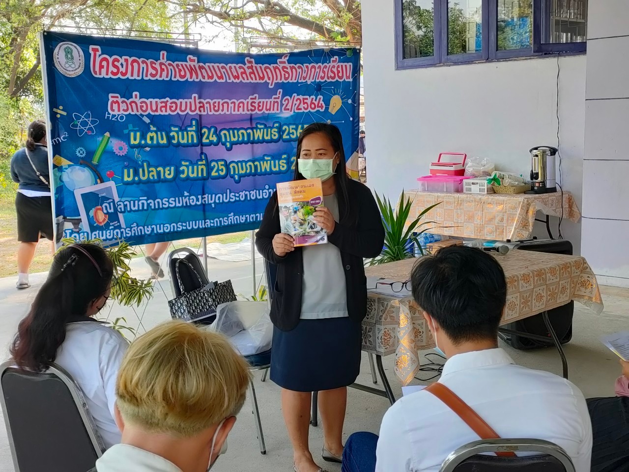 วันที่ 25 กุมภาพันธ์ 2565 นางชมัยพร ภัทรเรืองชัย ผอ. กศน.อำเภอบรรพตพิสัย พร้อมด้วย คณะครูและบุคลากร กศน.อำเภอบรรพตพิสัย ดำเนินการจัดโครงการค่ายพัฒนาผลสัมฤทธิ์ทางการเรียน ติวก่อนสอบปลายภาคเรียนที่ 2/2564