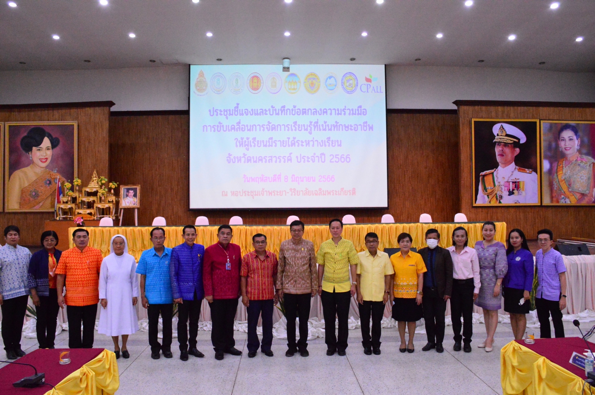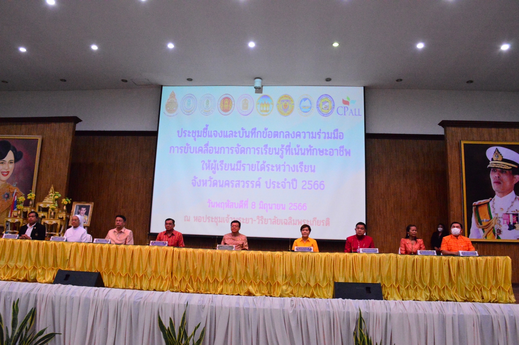 ตามโครงการขับเคลื่อนการยกระดับคุณภาพการศึกษาและประสิทธิภาพการศึกษาจังหวัดนครสวรรค์โดยผ่านกลไกของคณะกรรมการศึกษาธิการจังหวัด (กศจ.) มีนายชยันต์ ศิริมาศ ผู้ว่าราชการจังหวัดนครสวรรค์เป็นประธานในพิธี โดยมีการชี้แจงรายละเอียดการขับเคลื่อนการจัดการเรียนรู้ที่เน้นทักษะอาชีพให้ผู้เรียนมีรายได้ การทำบันทึกข้อตกลงความร่วมมือทางการศึกษา (Memorandum of Understanding : MOU) หน่วยงานระดับจังหวัดได้แก่ จังหวัดนครสวรรค์ ศึกษาธิการจังหวัดนครสวรรค์ สำนักงานเขตพื้นที่การศึกษาประถมศึกษานครสวรรค์ เขต 2 สำนักงานเขตพื้นที่การศึกษามัธยมศึกษานครสวรรค์ สำนักงานส่งเสริมการเรียนรู้จังหวัดนครสวรรค์ คณะกรรมการประสานและส่งเสริมการศึกษาเอกชนจังหวัดนครสวรรค์ คณะกรรมการการอาชีวศึกษานครสวรรค์ มหาวิทยาลัยเจ้าพระยา และบริษัท ซีพี ออล์ล จำกัด (มหาชน) หน่วยงานระดับสถานศึกษาได้แก่ โรงเรียนวัดบ้านคลอง โรงเรียนสวนป่าแม่กะสี โรงเรียนอนุบาลแม่เปิน วิทยาลัยอาชีวศึกษานครสวรรค์ โรงเรียนเซต์โยเซฟนครสวรรค์ ศูนย์ส่งเสริมการเรียนรู้อำเภอเมืองนครสวรรค์ ณ หอประชุมเจ้าพระยา วิริยาลัย เฉลิมพระเกียรติ มหาวิทยาลัยเจ้าพระยา จังหวัดนครสวรรค์