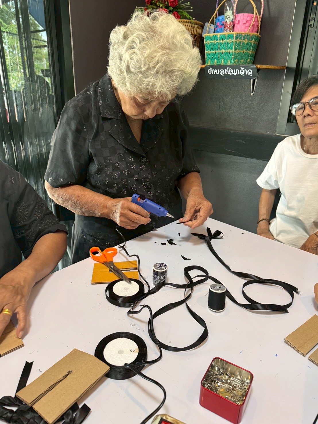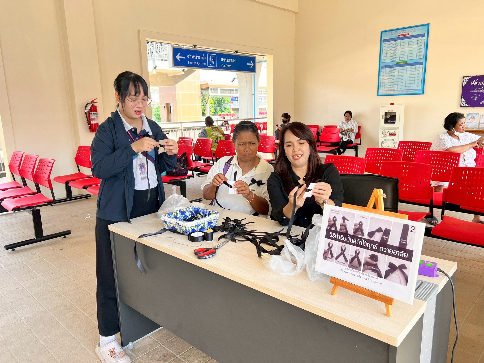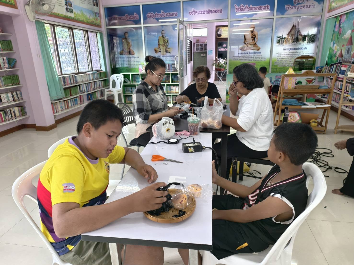 จึงได้จัดกิจกรรมบริการประชาชน “สอนทำริบบิ้นเครื่องหมายแสดงความอาลัย” ขึ้น เพื่อเปิดพื้นที่ให้ประชาชนได้ร่วมกันประดิษฐ์ริบบิ้นฯ สำหรับใช้ติดเครื่องแต่งกาย และได้แจกจ่ายริบบิ้นที่ผู้อำนวยการ ครู และบรรณารักษ์ร่วมใจกันทำขึ้นเพื่อแจกจ่ายให้กับประชาชน เพื่อเป็นการแสดงออกถึงความรัก ความอาลัย และร่วมน้อมเกล้าน้อมกระหม่อมรำลึกในพระมหากรุณาธิคุณอันหาที่สุดมิได้ ซึ่งจัดขึ้นระหว่างวันที่ 27 - 30 ตุลาคม 2568 ณ สกร.ระดับอำเภอ สกร.ระดับตำบล ห้องสมุดประชาชน ห้องสมุดเคลื่อนที่สำหรับชาวตลาด รวมไปถึงการออกจัดกิจกรรมในพื้นที่ที่ประชาชนรวมกลุ่มและออกมาจับจ่ายใช้สอย เพื่ออำนวยความสะดวกแก่ประชาชนให้ได้ร่วมกิจกรรมอย่างทั่วถึง