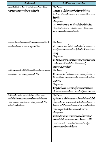 2. ส่งเสริม สนับสนุนการจัดการศึกษานอกระบบและการศึกษาตามอัธยาศัยที่มีคุณภาพและการ เรียนรู้ตลอดชีวิตภายใต้หลักปรัชญาของเศรษฐกิจพอเพียง และมีทักษะที่จําเป็นในโลกศตวรรษที่ 21